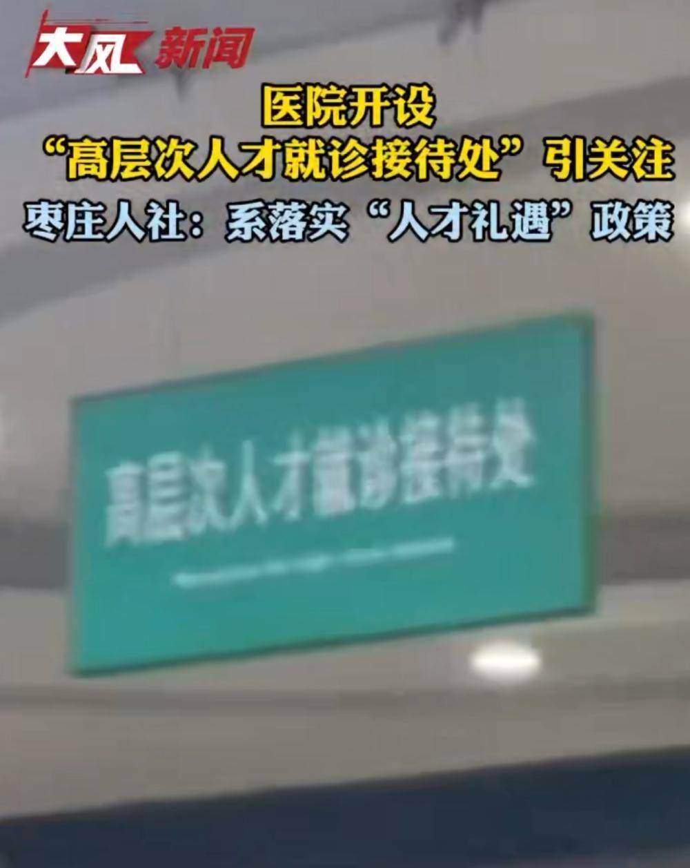 近日,有网友发布视频称,他在山东省滕州市中心人民医院就诊时发现,该院设置有一处“高层次人才就诊接待处”,此事引发网友关注。
